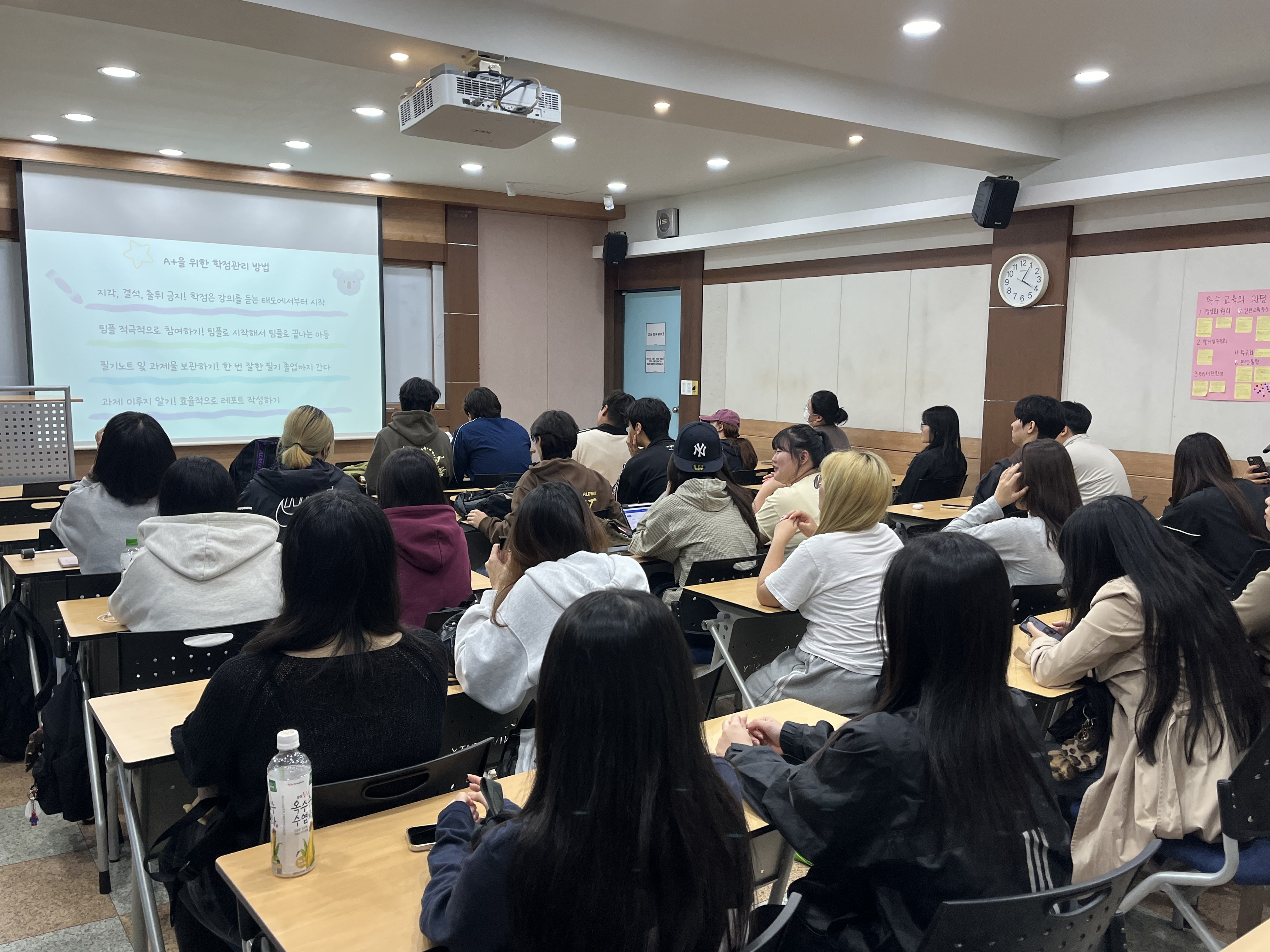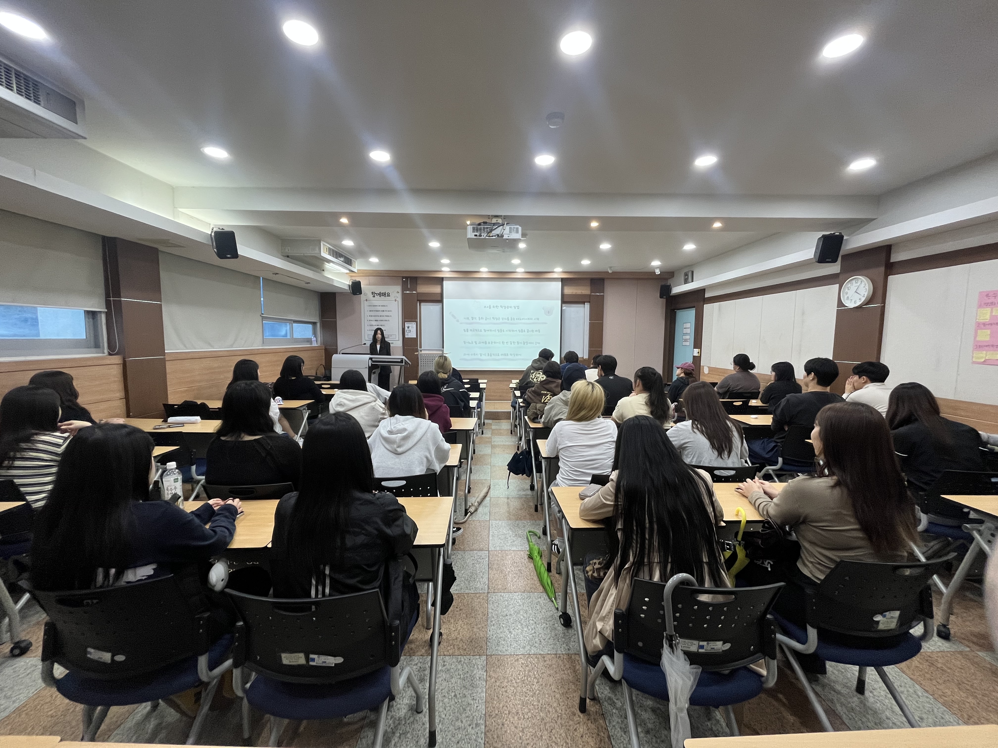 2025학년도 2학기 장학생 토크콘서트가 진행되었습니다. 이번 토크콘서트는 학과 3·4학년 장학생이 1·2학년 학부생들에게 전공 학습 방법과 학과 적응 노하우 등을 공유하는 학과 맞춤형 학습법 특강으로, 3학년 이수민 학생이 진행하였습니다. 참여 학생들은 학과 소개, 학과 정보, 다양한 활동(부·복수전공, 동아리, 대외활동, 어학연수 등), 장학금 정보, 교수님별 시험 특성 등 실질적으로 도움이 되는 정보를 접하며 전공 학습과 학과 적응에 대한 이해를 높이는 시간을 가졌습니다. 앞으로도 학과 장학생과 함께하는 다양한 프로그램을 통해 후배 학생들이 학습과 진로 역량을 키울 수 있도록 지원할 예정입니다.