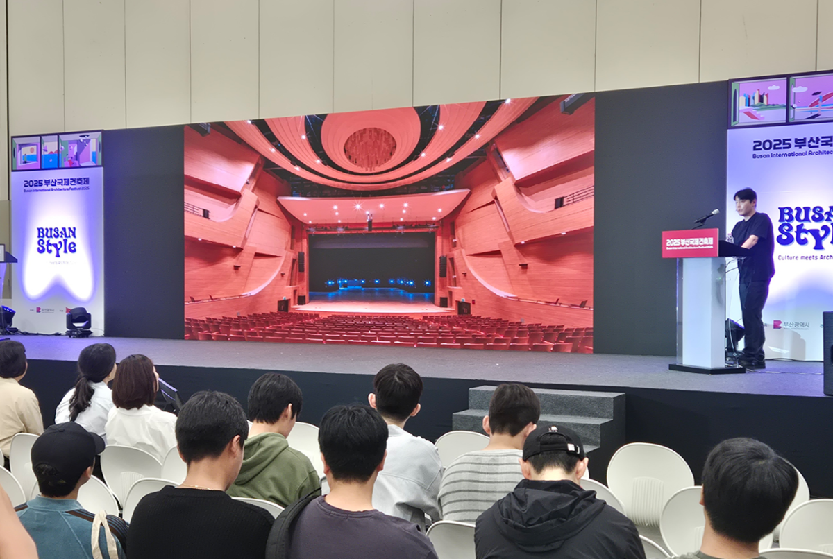본교 출신인 김지완 동문(dmp건축 수석소장)은 2025년 9월 17일부터 21일까지 부산 벡스코에서 개최된 ‘2025 부산국제건축제’의 주제전, 「B City 부산문화건축전: 공공의 공간, 미래의 상상」에서 ‘도시가 만든 무대, 무대가 바꾼 도시: 부산콘서트홀 이야기’를 주제로 강연과 토론을 진행하였습니다.